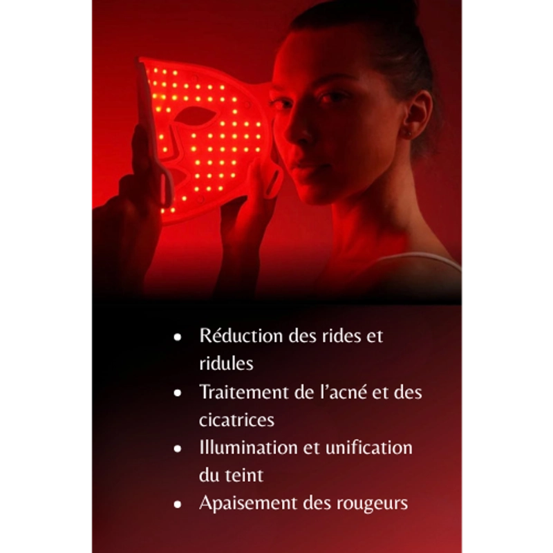 Ce masque utilise des longueurs d'onde lumineuses spécifiques pour stimuler la régénération cellulaire, réduire les rides et améliorer l'élasticité de votre peau, vous offrant un teint visiblement plus jeune et éclatant.